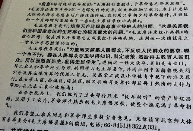 回到前面的“语录操”。现在咱国不少行业,早上开工前,要把雇员都吆喝出来作一遍励志操。那玩意,有文革的筋骨在里面。老汉难得侃励志,在此励一个。您要是不得已在此类行业打工糊口,该做操就做操,不过,换工作应该提上日程了。