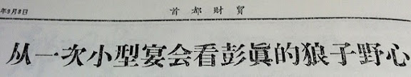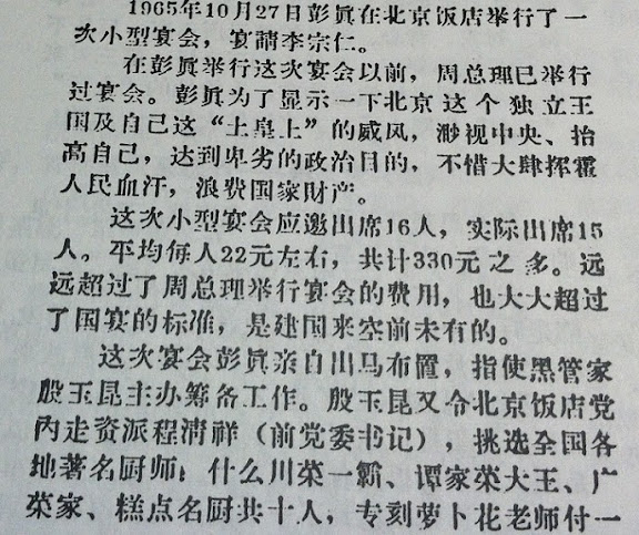 确实,这些小报在为太祖的“革命”冲锋陷阵中,抖出不少原本众人全然不知的内幕,这个“土豪”菜单,就是一个好例子。彭大人聚众一通鱼翅燕窝海参乌龟的大嚼,由北京老百姓买单,没文革,这腐败不就混过去了?