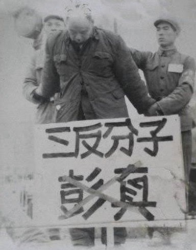彭在文革起始前是咱党北京市委书记兼市长。历任北京的市长中,后来有过“小媳妇”市长,但彭不是,市长作的很霸道,连太祖都指使不动,有了“针插不进、水泼不进”之说。跟太祖作对?所以文革时的彭就这样了: